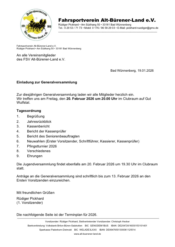 - Einladung zur Generalversammlung Januar 19, 2026